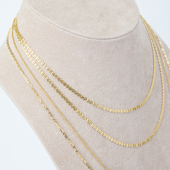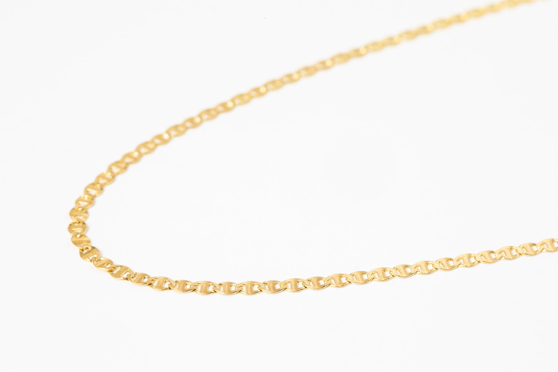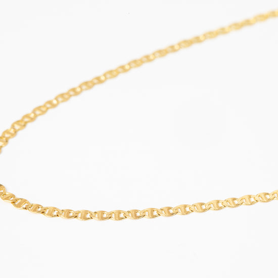 The Abundance Flat Mariner Chain is a luxurious 14k yellow gold piece, expertly crafted with Italian precision. Its iconic interlocking links symbolize unity, making it the perfect shared piece for couples. The flat design allows light to play off its surface, creating a stunning effect with every movement. This meaningful chain represents the unbreakable bond between two people, making it ideal for gifting to a loved one or as a timeless piece to share and cherish together.
